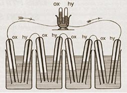 The announcement by SeimensWestinghouse and the Department of Energy of the commercialization of the solid oxide fuel cell (SOFC) points out the length of time and effort necessary to bring a process from discovery of the basic principles to commercialization. In the case of SOFCs it required over 150 years to bring the "hydrogen battery" to commercialization as a solid oxide fuel cell. The history of fuel cells begins with the discovery of electrolysis in 1800 when William Nicholson and Anthony Carlisle demonstrated that electricity could be used to decompose water into hydrogen and oxygen. Building on electrolysis, in 1839 Sir William Grove noted that an electrical current would flow between paired platinum electrodes sealed in separate tubes of hydrogen and oxygen, when the electrodes were immersed in an electrolyte of sulfuric acid. Calling his discovery a gas battery, he found that water accumulated in the electrode tubes and if several were connected in series (Figure 1, Seimens Electric) sufficient current would be produced to "effect the decomposition of water" or drive electrolysis.